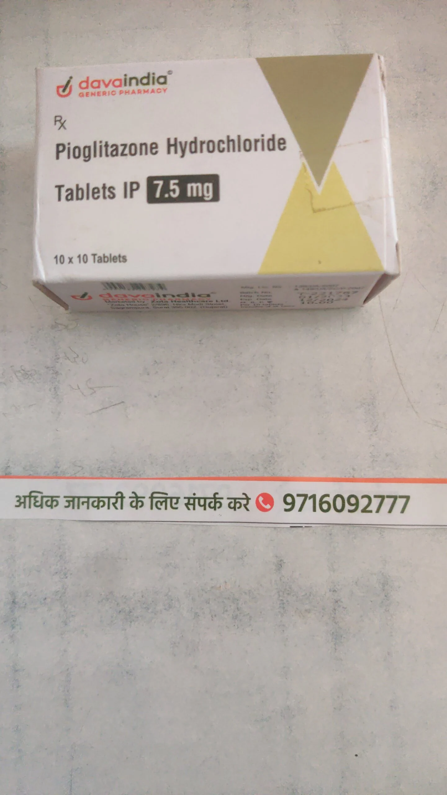 10 reviews for Pioglitazone Hydrochloride Tablets IP 7.5 mg